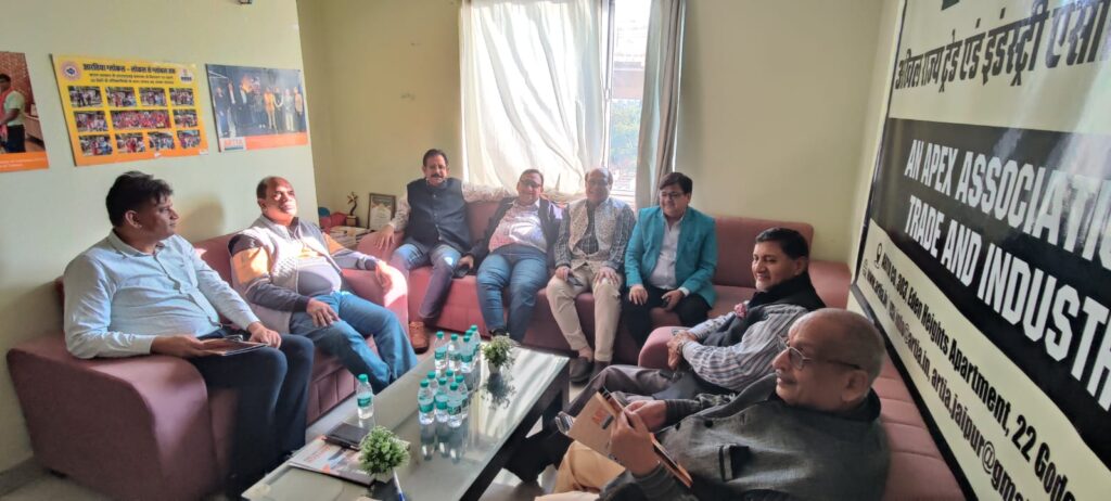 राजस्थान में ईज आफ डूईंग बिजनेस प्रोसेस को सहज एवं प्रभावी कैसे बनाया जाए, इस पर टीम आरतिया की एक उच्च स्तरीय बैठक आयोजित की गई। बैठक में विष्णु भूत, कमल कंदोई, आशीष सर्राफ, जसवंत मील, प्रेम बियाणी, अजय गुप्ता, ज्ञान प्रकाश, ओ पी राजपुरोहित, कैलाश शर्मा, सज्जन सिंह, संजय पाराशर, राजीव सिंहल, तरूण सारडा, सुनील बंसल, दिनेश गुप्ता, डॉ रवि गोयल, तिरूपति कंदोई, सुरेश बंसल तथा आयुष जैन उपस्थित थे। सभी से मिले इनपुट के आधार पर टीम आरतिया ने ईज आफ डूईंग बिजनेस के लिए व्यवहारिक रोड़मैप बनाया है। इस रोड़ मैप पर आधारित एक ज्ञापन केंद्र सरकार कैबिनेट सचिवालय से आये सचिव मनोज गोविल को आरतिया की ओर से अजय गुप्ता और आयुष जैन ने सौंपा।